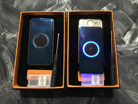 Зажигалка USB спираль + подсветка 22.3 синяя